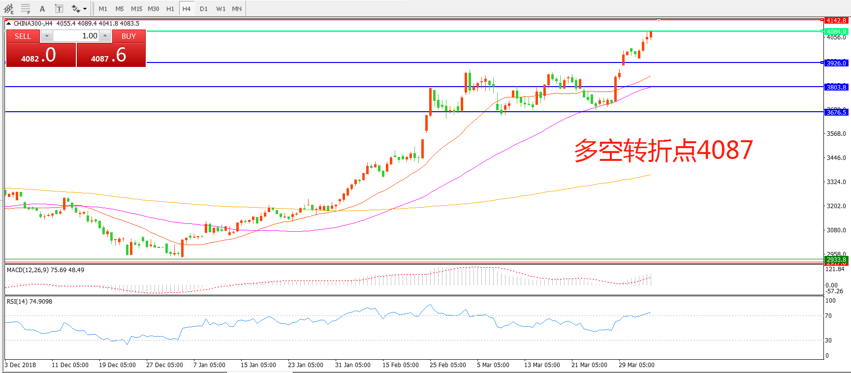 多空转折点:4087.00