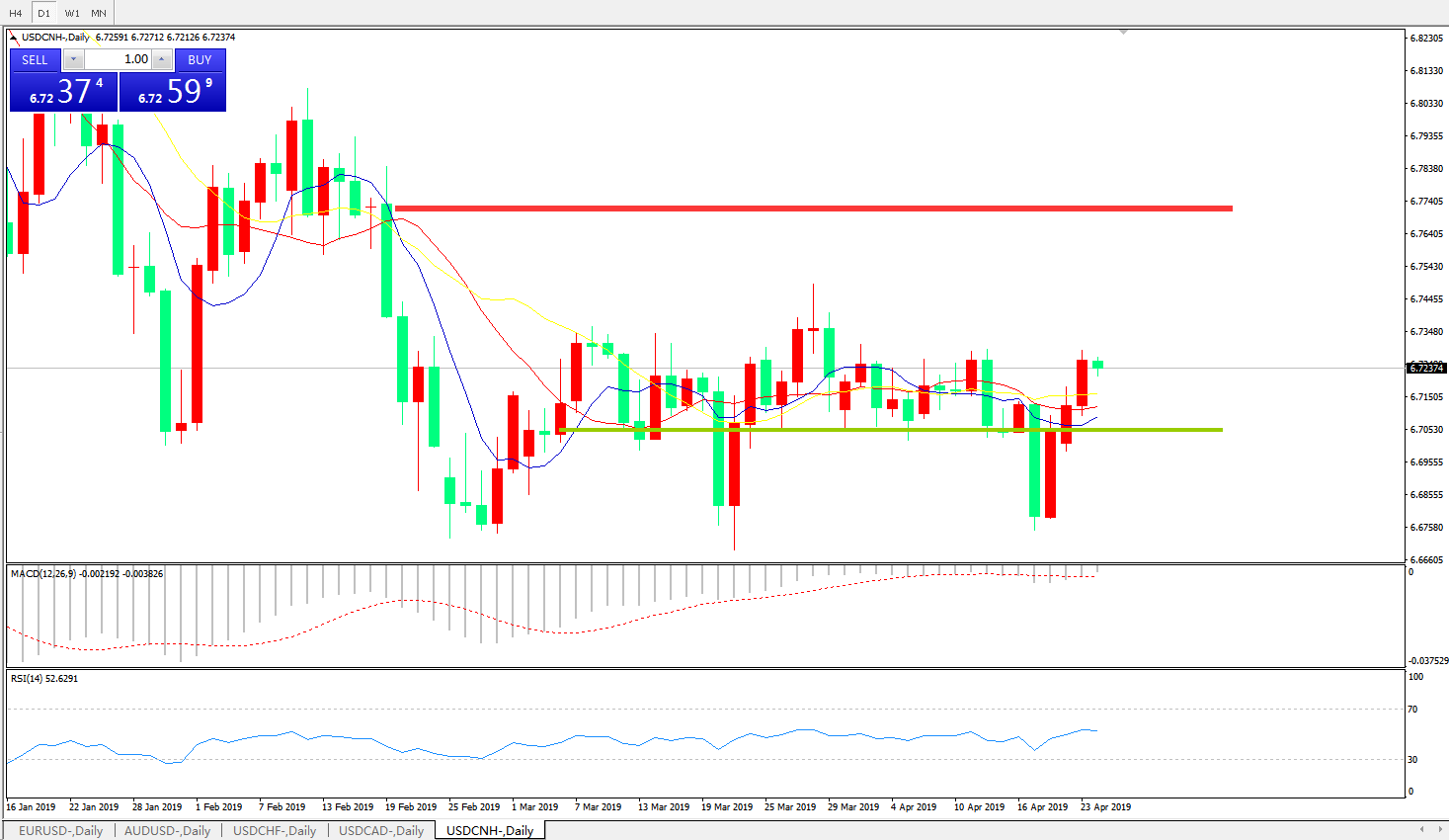 备选策略:6.6990之下,看跌,目标价位为6.6730,然后为6.6325