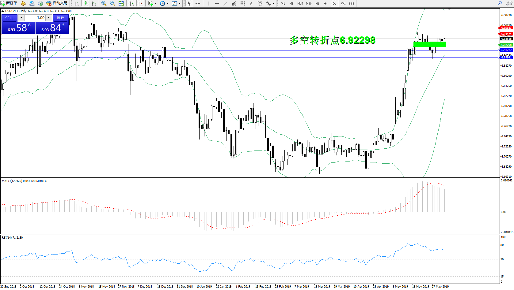 交易策略:6.92298上方看涨,目标6.944746.95683