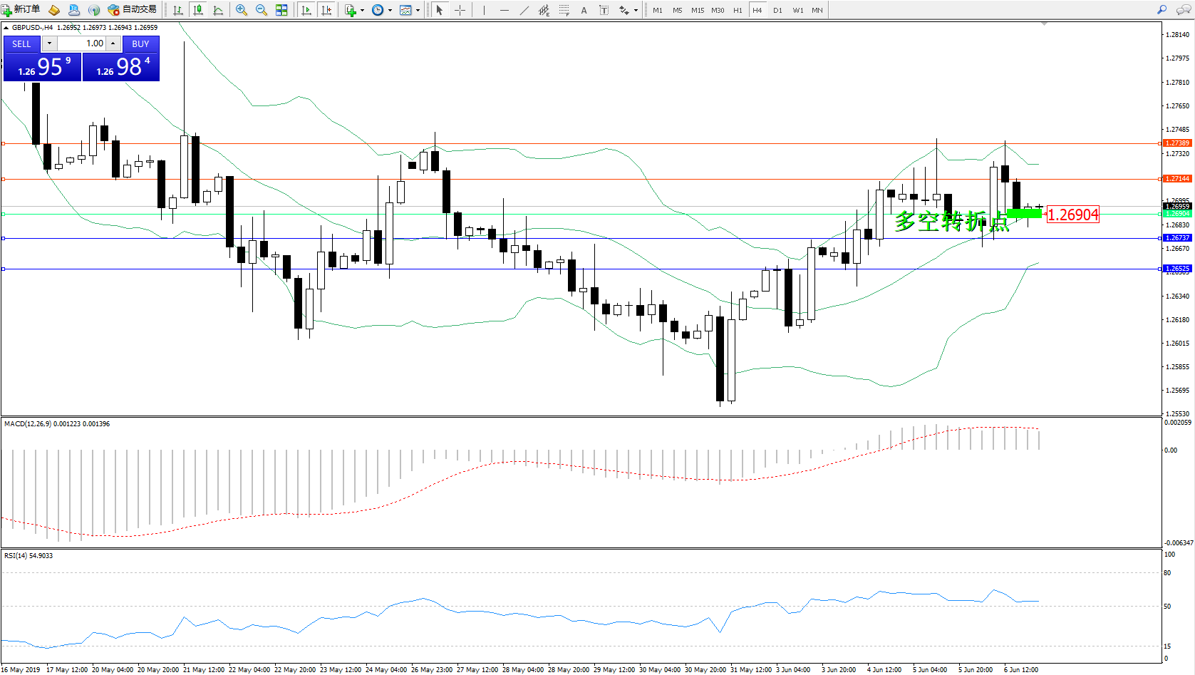 交易策略:1.26904上方看涨,目标1.271441.27389