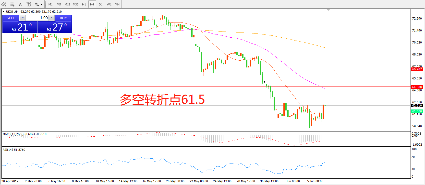 多空转折点:61.50