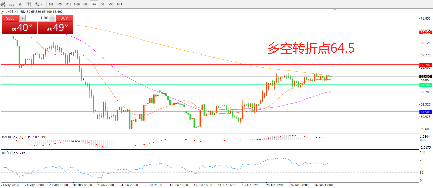 周四(6月27日),EIA库存报告利多影响仍在发酵,但投资者在G20峰会及石油输出国组织(OPEC)会议前会保持谨慎,布伦特原油周四收涨0.1%,报65.40美元/桶,伊朗方面,欧洲国家仍试图透过维持其部份经济利益来挽救核协议。但目前为止并未成功。