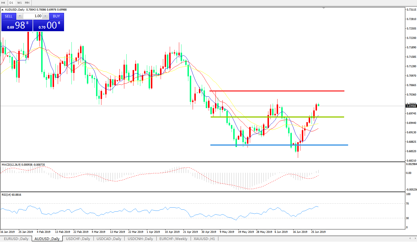 交易策略:0.6960上方看涨,目标0.70200.7100