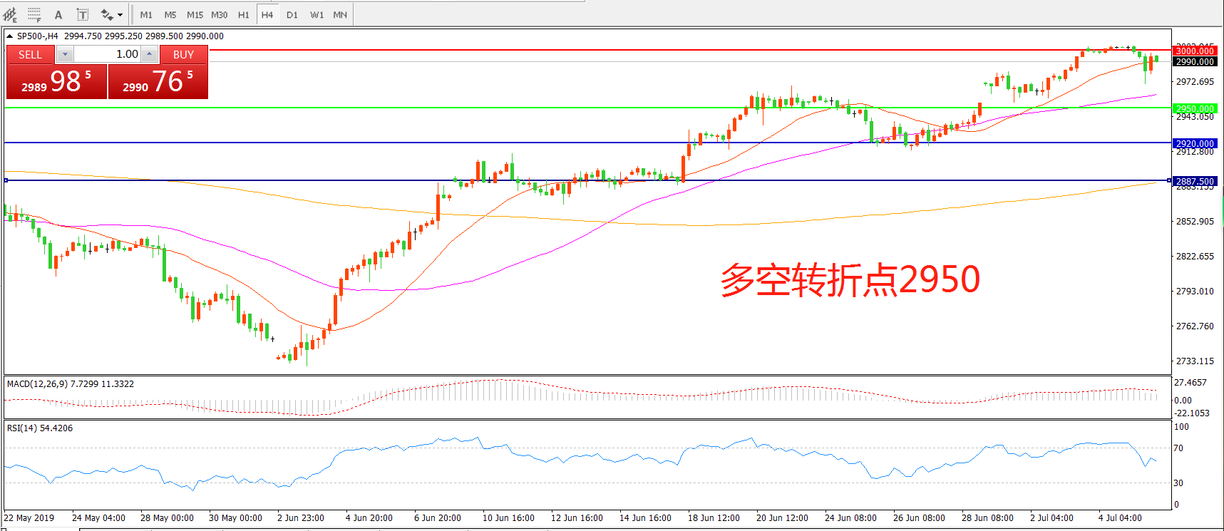 多空转折点:2950.00
