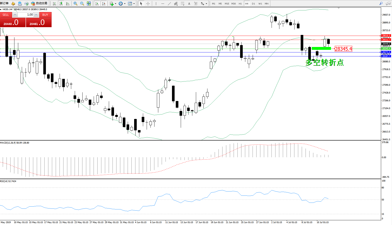恒指HK50 ——4小时K线图显示: