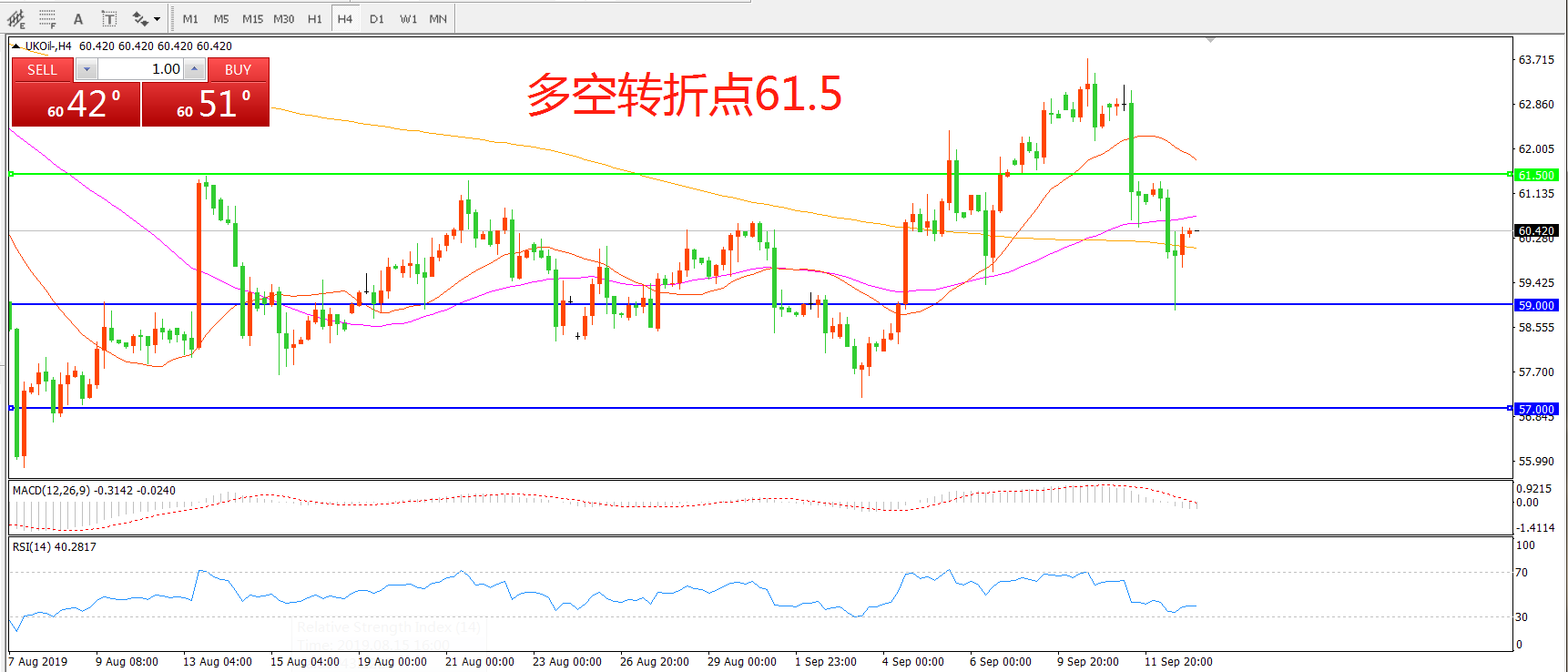 多空转折点:61.50
