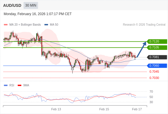在 0.7060 之上,看涨,目标价位为 0.7105 ,然后为 0.7120 。