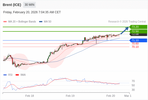 在 71.10 之上,看涨,目标价位为 72.50 ,然后为 73.20 。