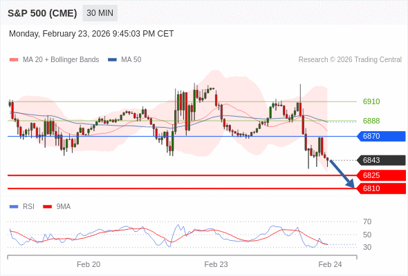 在 6870 之下,看跌,目标价位为 6825 ,然后为 6810 。