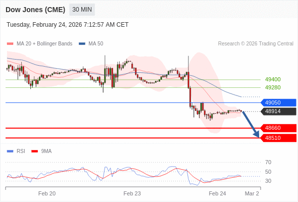 在 49050 之下,看跌,目标价位为 48660 ,然后为 48510 。