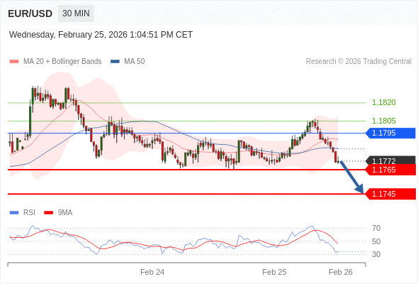在 1.1795 之下,看跌,目标价位为 1.1765 ,然后为 1.1745 。