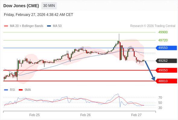在 49550 之下,看跌,目标价位为 49050 ,然后为 48810 。