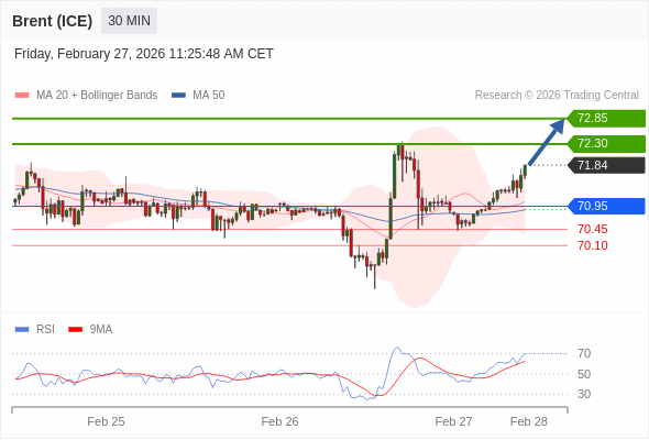 在 70.95 之上,看涨,目标价位为 72.30 ,然后为 72.85 。