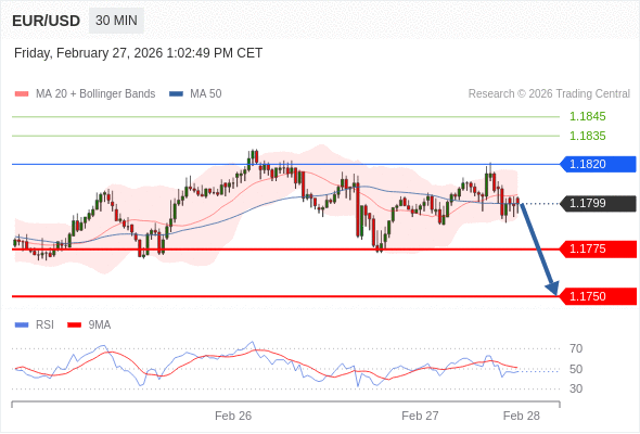 交易策略: 在 1.1820 之下,看跌,目标价位为 1.1775 ,然后为 1.1750 。