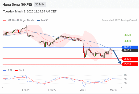在 26215 之下,看跌,目标价位为 25800 ,然后为 25600 。