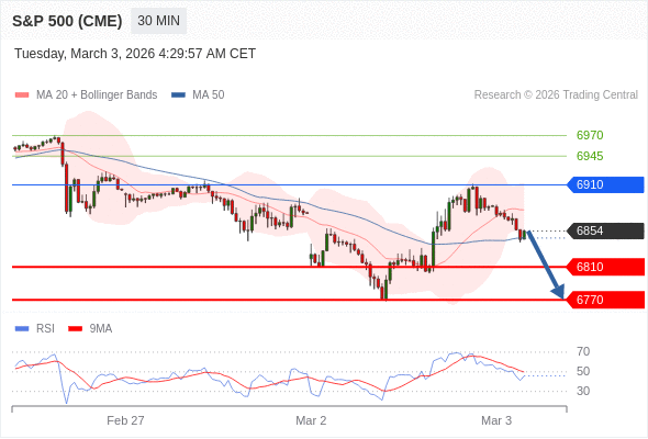 在 6910 之下,看跌,目标价位为 6810 ,然后为 6770 。