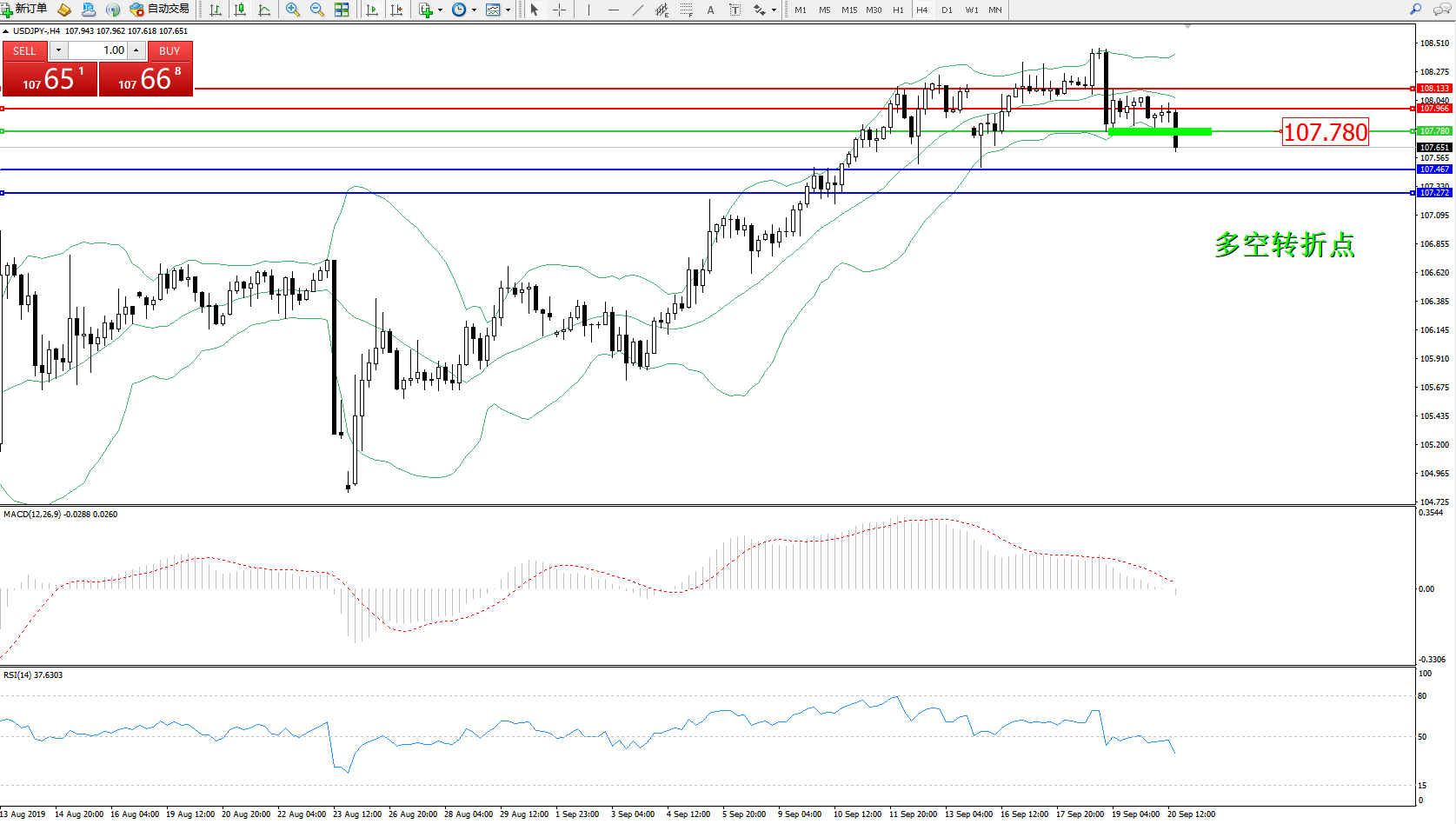 交易策略:107.780下方看跌,目标107.467、107.272
