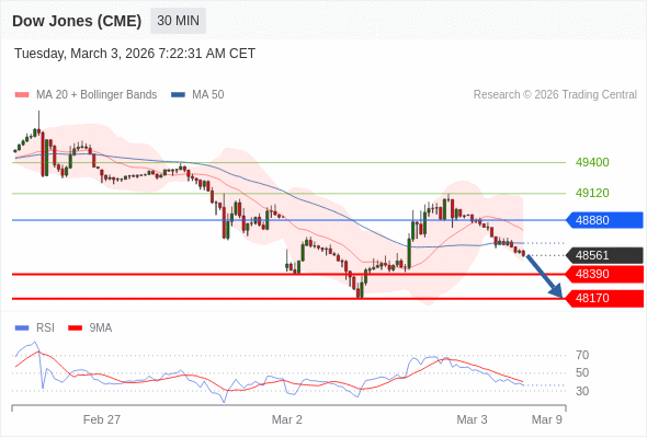 在 48880 之下,看跌,目标价位为 48390 ,然后为 48170 。