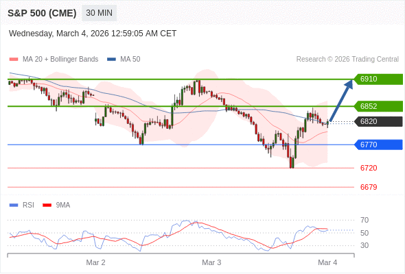 在 6770 之上,看涨,目标价位为 6852 ,然后为 6910 。