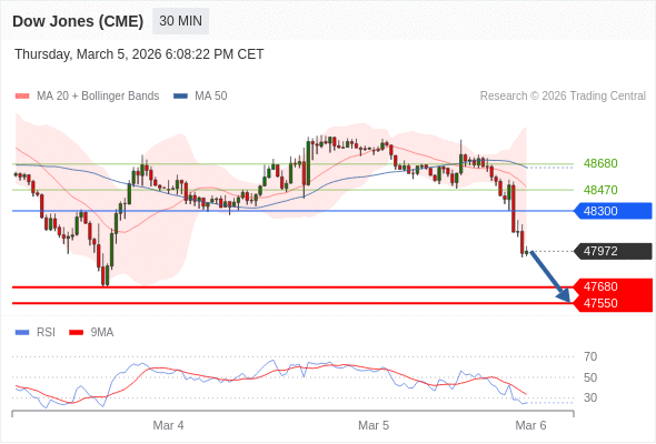 在 48300 之下,看跌,目标价位为 47680 ,然后为 47550 。