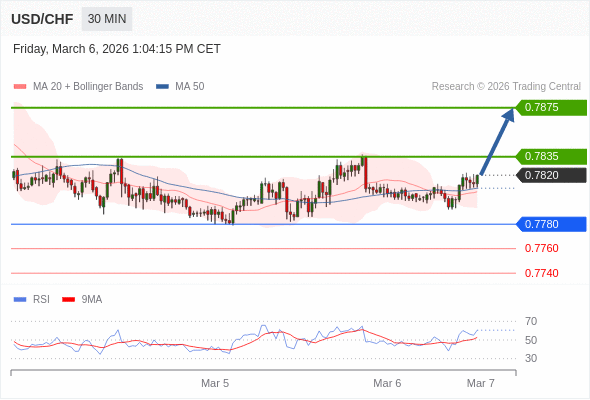 在 0.7780 之上,看涨,目标价位为 0.7835 ,然后为 0.7875 。