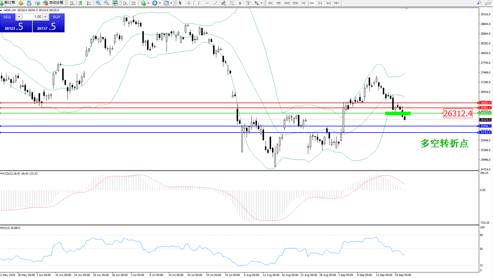 恒指HK50 ——4小时K线图显示: