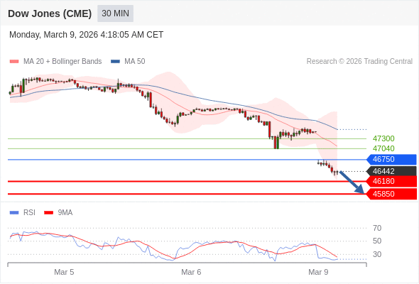 在 46750 之下,看跌,目标价位为 46180 ,然后为 45850 。