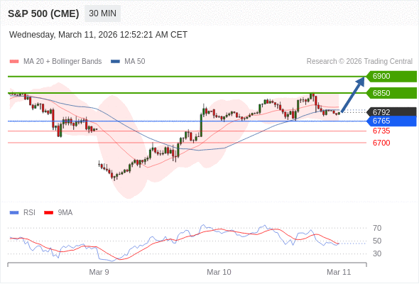 在 6765 之上,看涨,目标价位为 6850 ,然后为 6900 。