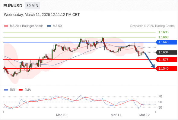 交易策略: 在 1.1645 之下,看跌,目标价位为 1.1575 ,然后为 1.1540 。