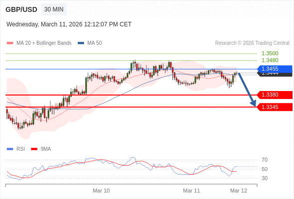 在 1.3455 之下,看跌,目标价位为 1.3380 ,然后为 1.3345 。