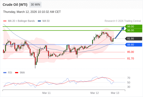 在 88.80 之上,看涨,目标价位为 96.00 ,然后为 98.00 。