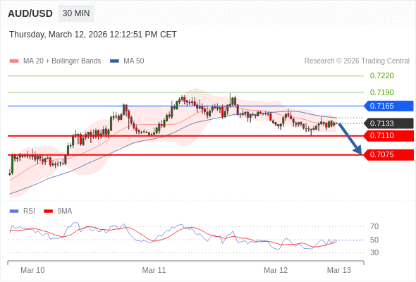 交易策略: 在 0.7165 之下,看跌,目标价位为 0.7110 ,然后为 0.7075 。