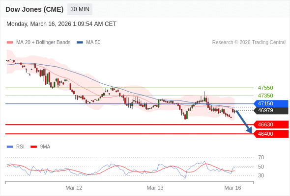 在 47150 之下,看跌,目标价位为 46630 ,然后为 46400 。