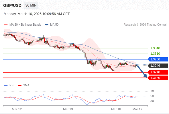 英镑/美元 当日内: 短期关键阻力位在1.3280。