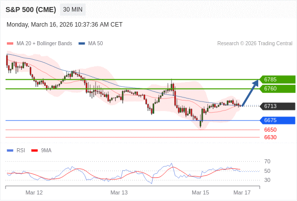 在 6675 之上,看涨,目标价位为 6760 ,然后为 6785 。