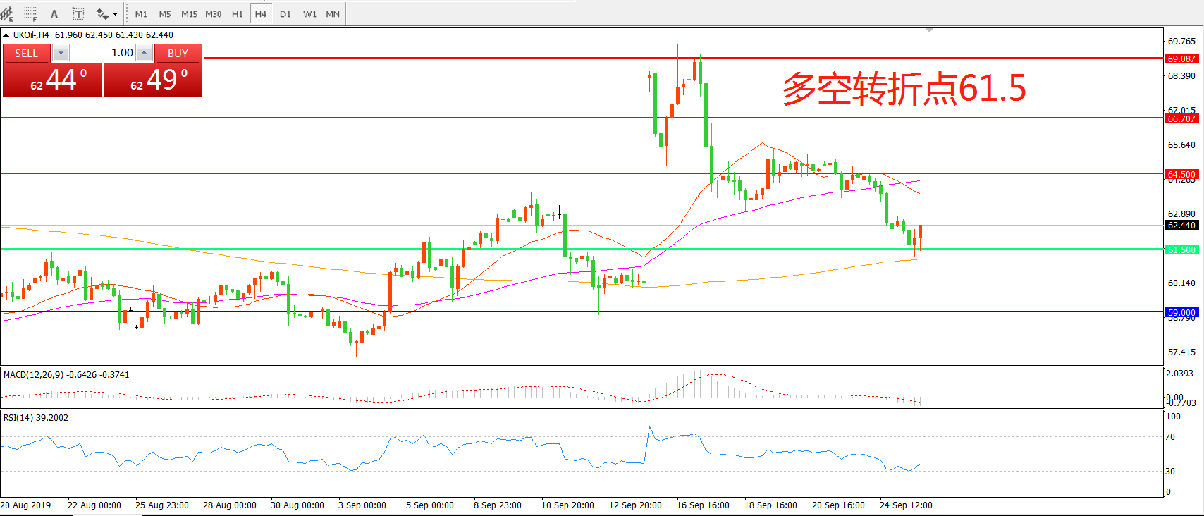 多空转折点:61.50