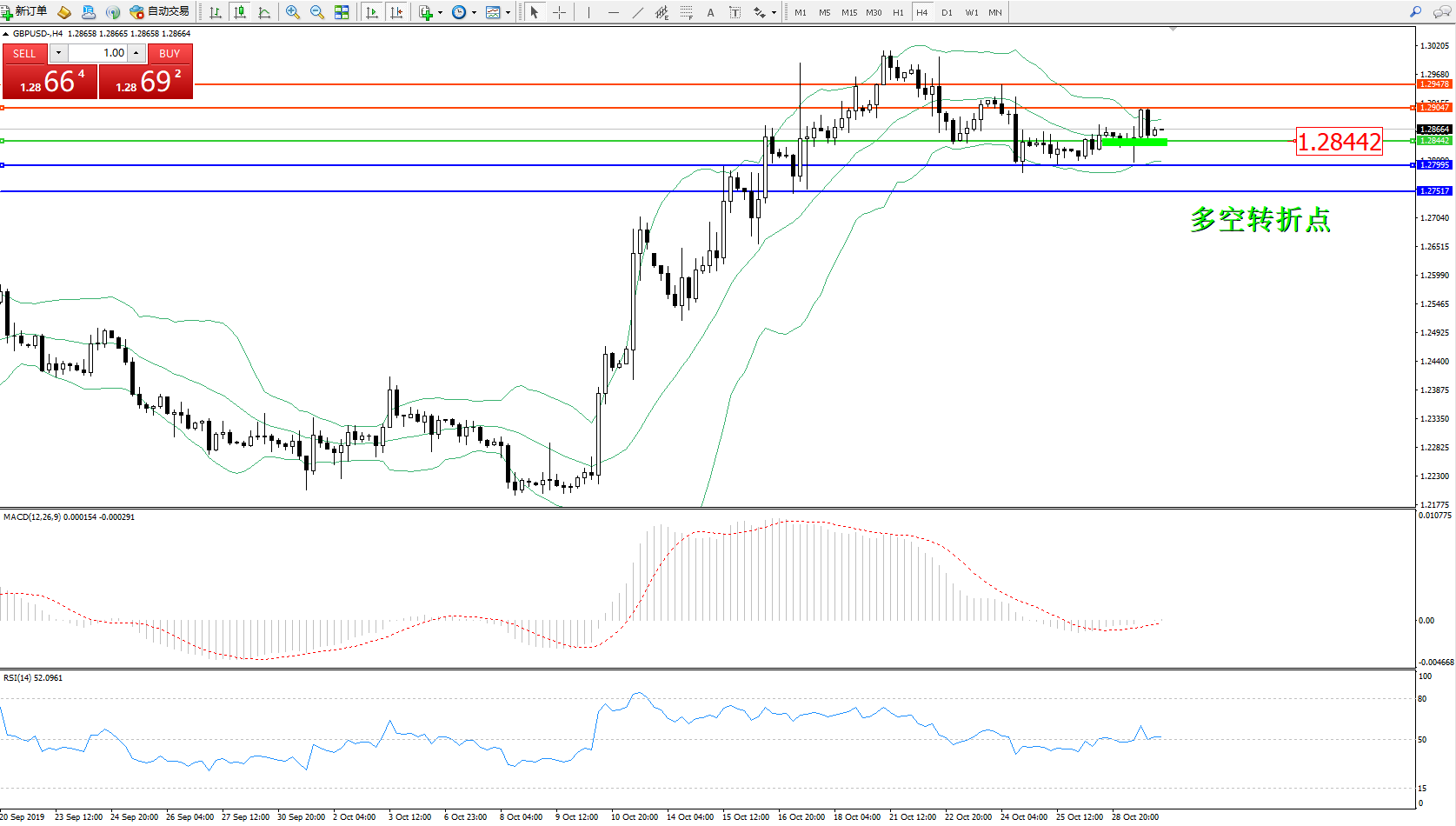 交易策略:1.28442上方看涨,目标1.290471.29478