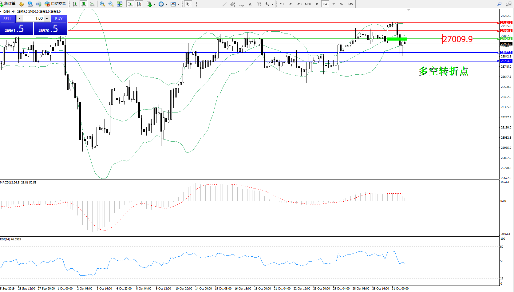 道琼斯指数10月31日(周四)收盘下跌140.50点,跌幅0.52%,报27046.23点。在美联储暗示将暂停降息后,市场押注美联储到明年7月前会再度降息,尽管美联储周三暗示降息暂告段落。疲软的制造业数据以及投资者对贸易形势的担忧重燃令市场更为慌乱,在非农就业报告将于周五出炉之际,市场仍在评估美联储的政策决议与美企财报。美国众议院投票通过弹劾总统调查程序。