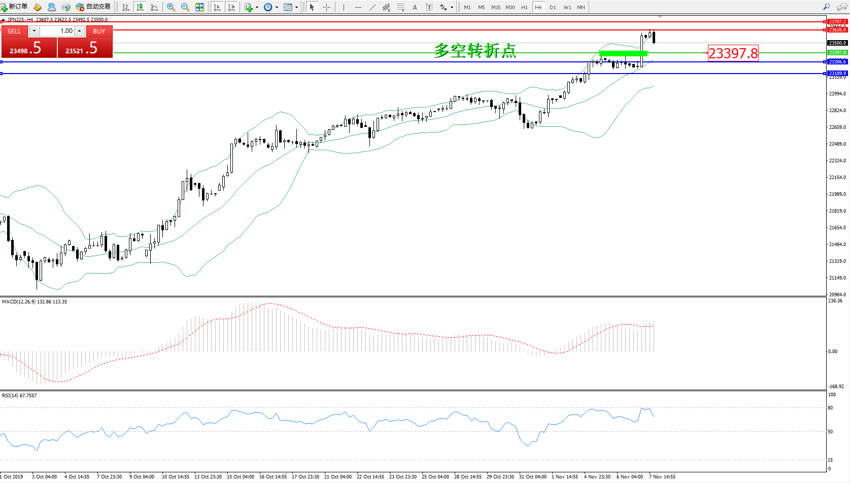 日经指数JPN225——4小时K线图: