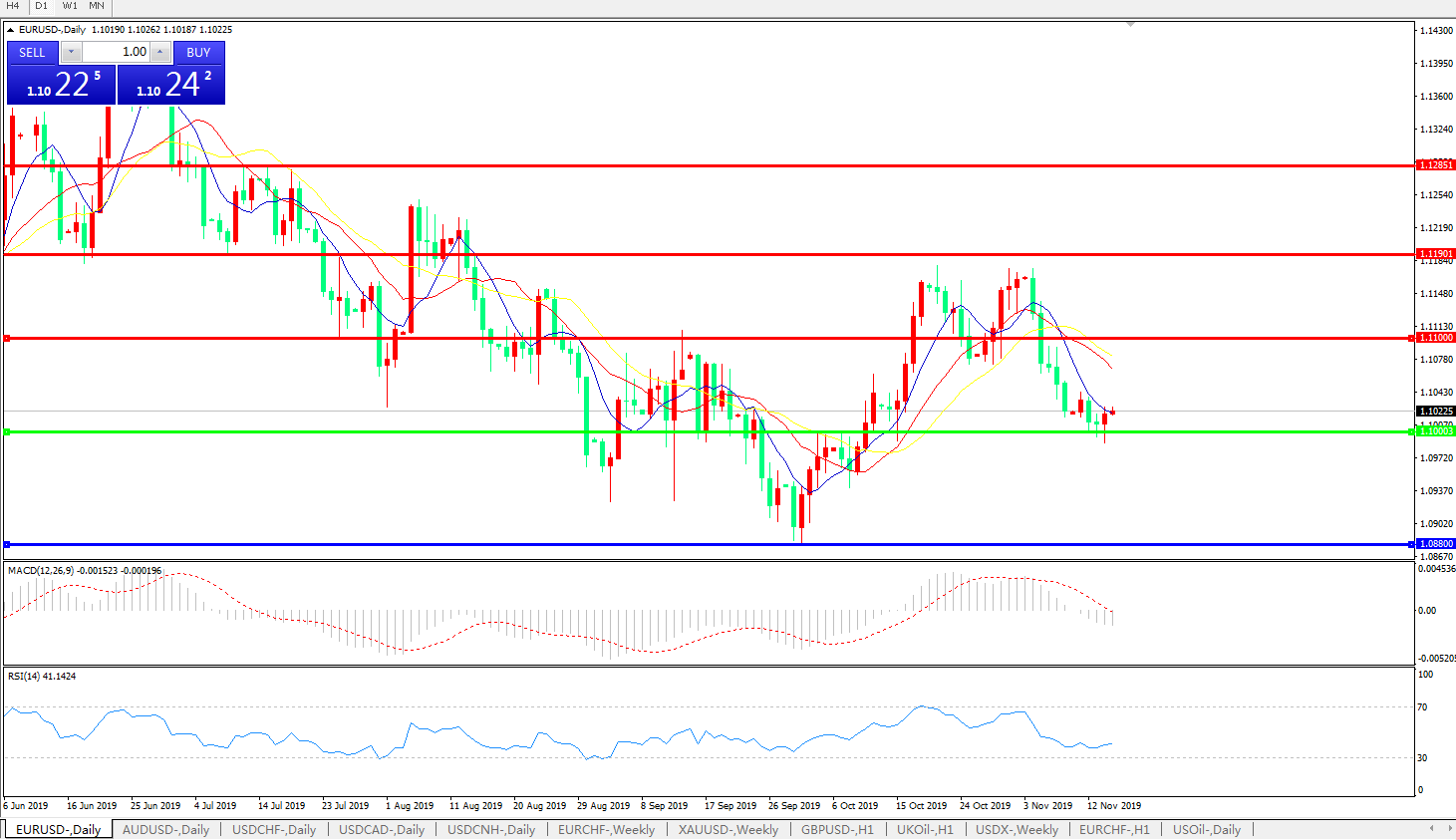 交易策略:1.1000上方看涨,目标1.1100、1.1190