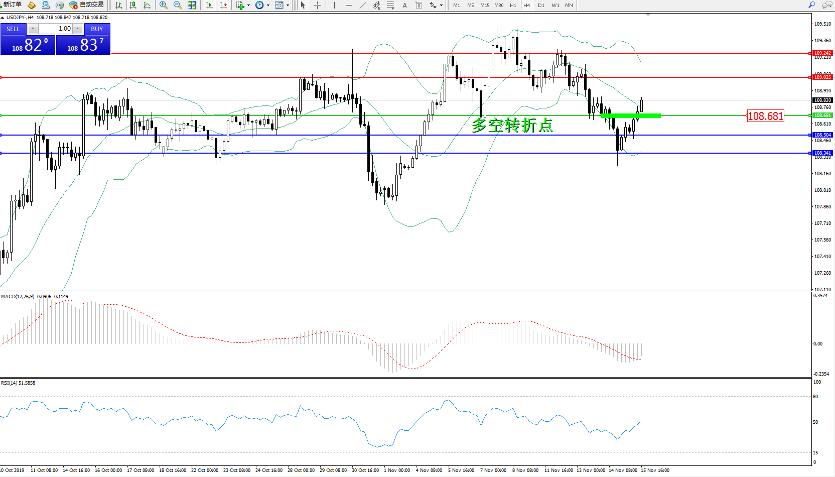 交易策略:108.681上方看涨,目标109.025109.242