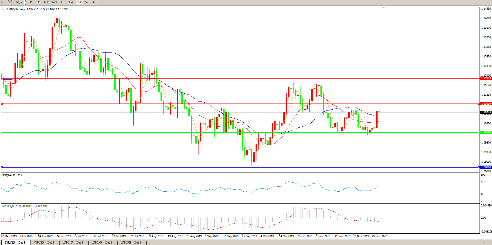 交易策略:1.1000上方看涨,目标1.1100、1.1190
