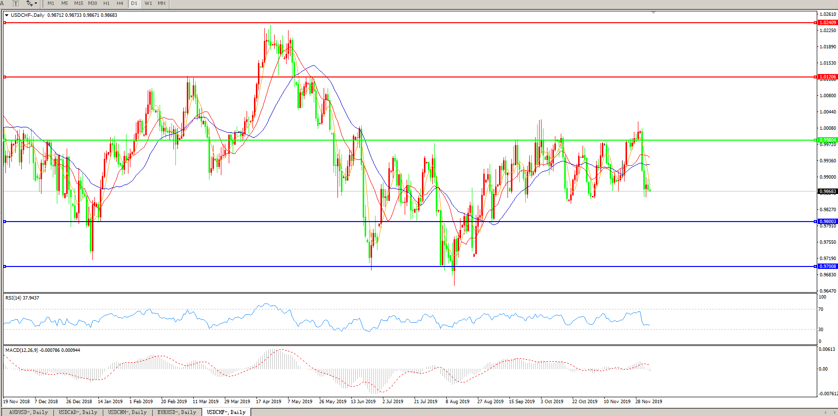 美元兑瑞郎USDCHF 日线图: