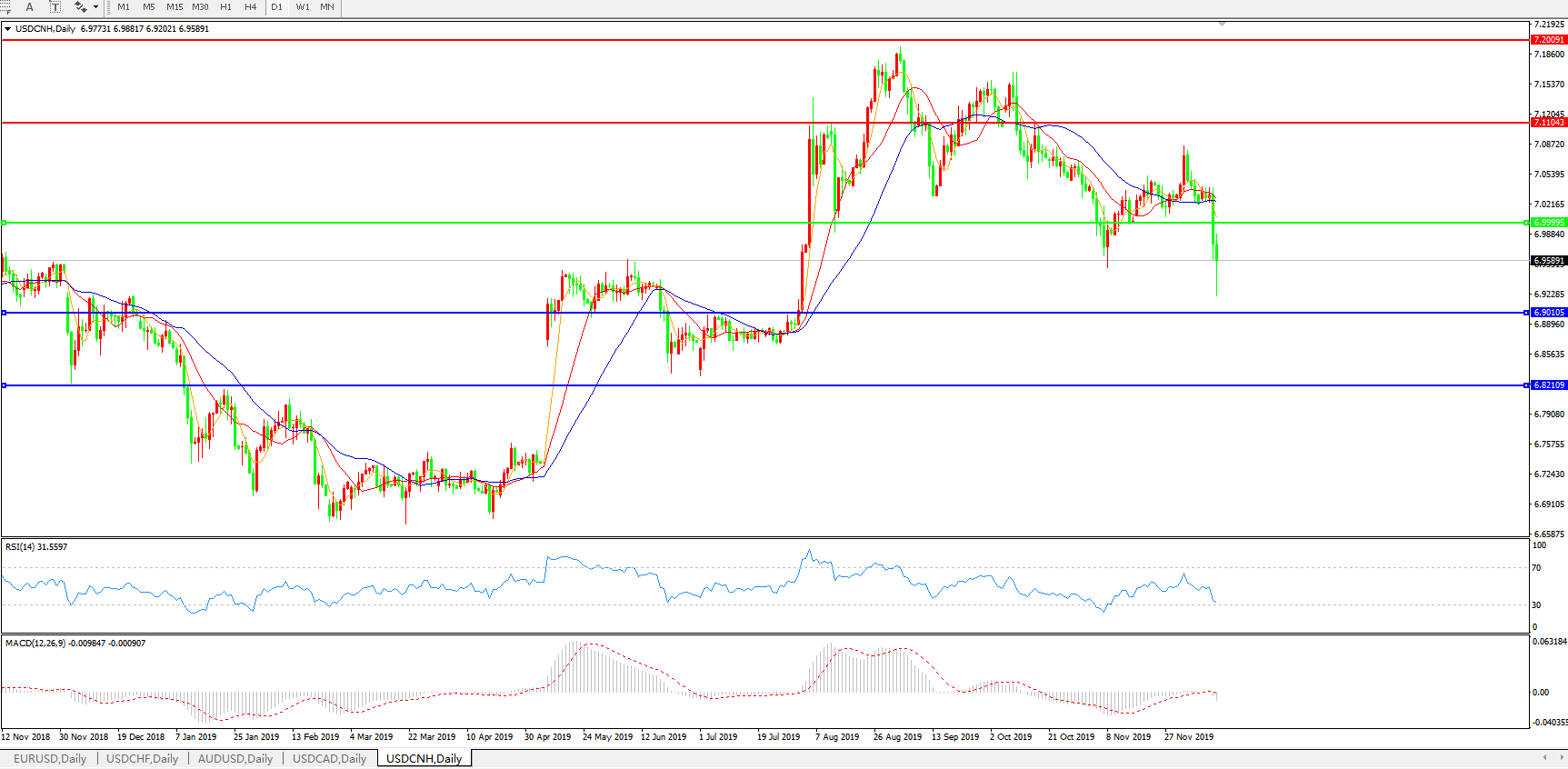 美元兑人民币USDCNH    日线图: