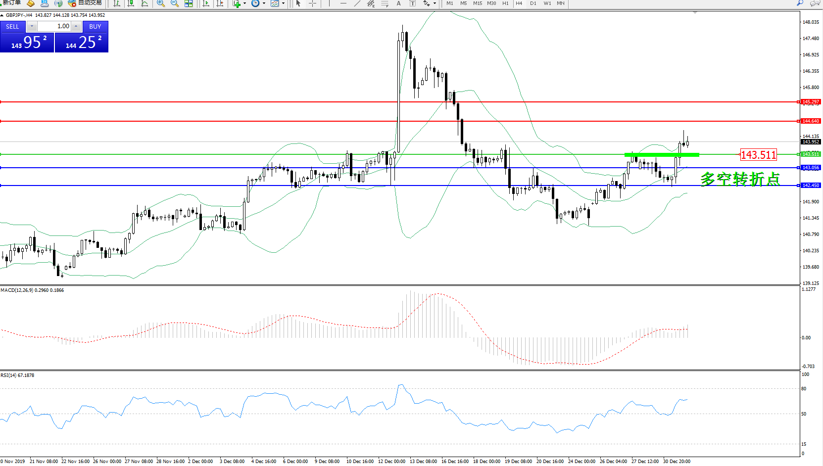 交易策略:143.511上方看涨,目标144.640145.297