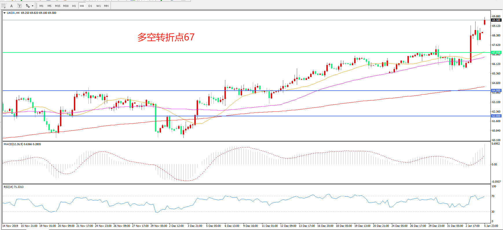 多空转折点:67.00
