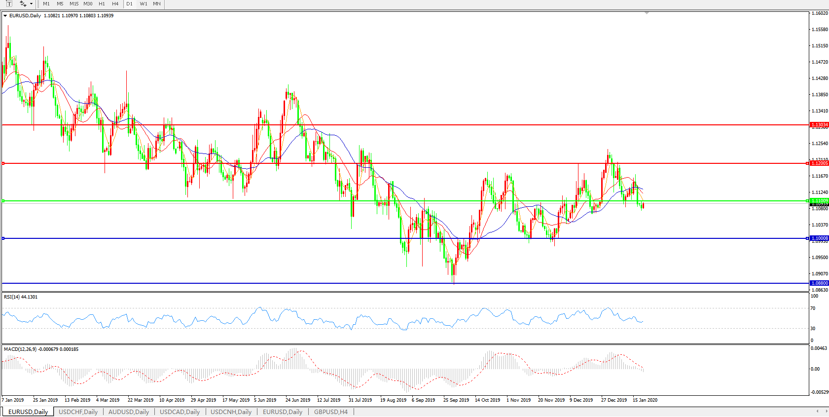 交易策略:1.1100下方看跌,目标1.1000、1.0880