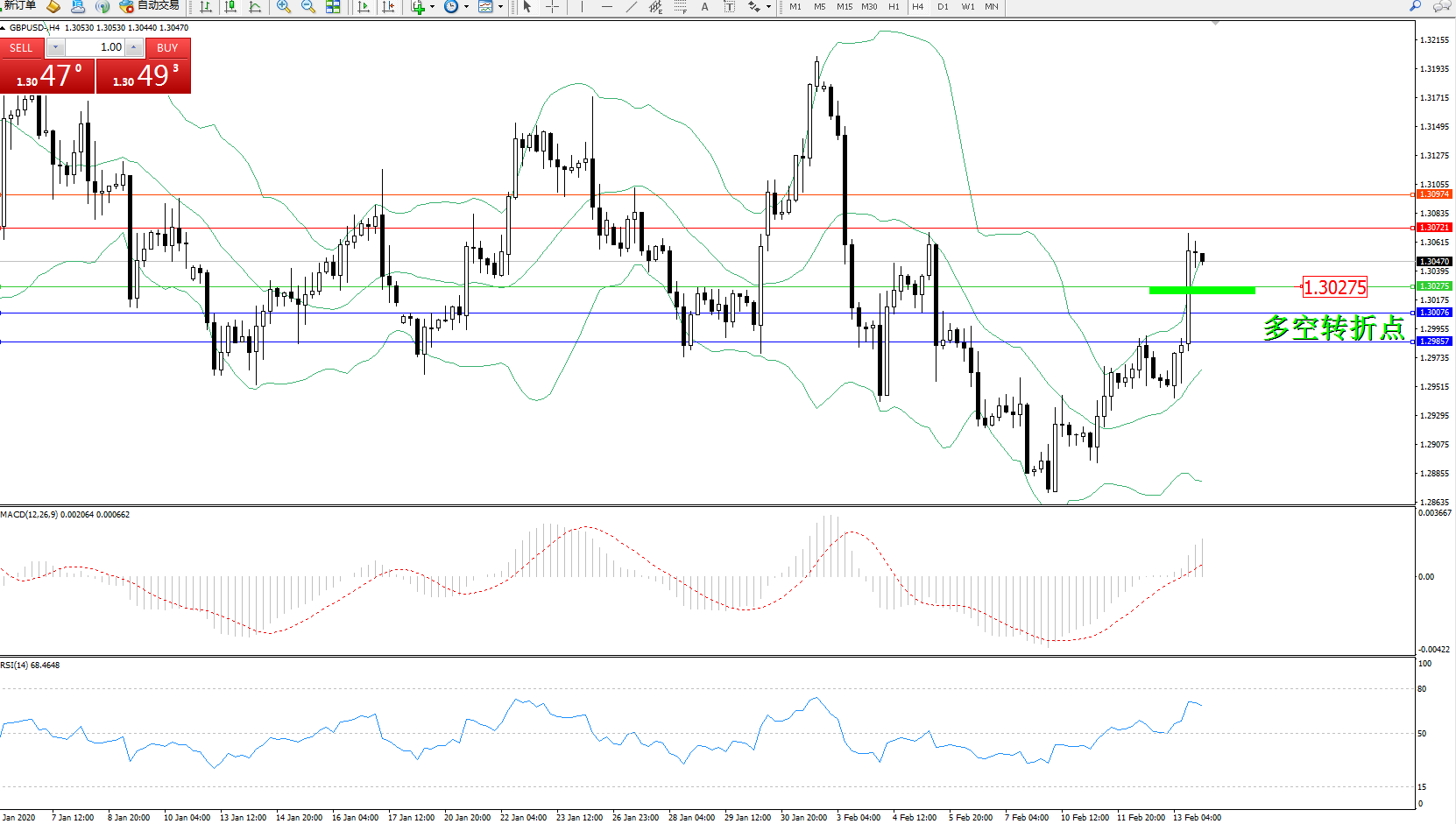 交易策略:1.30275上方看涨,目标1.307211.30974
