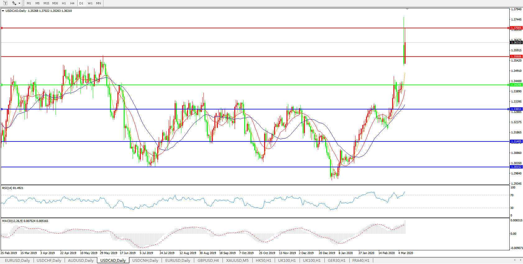 美元兑加元USDCAD 日线图: