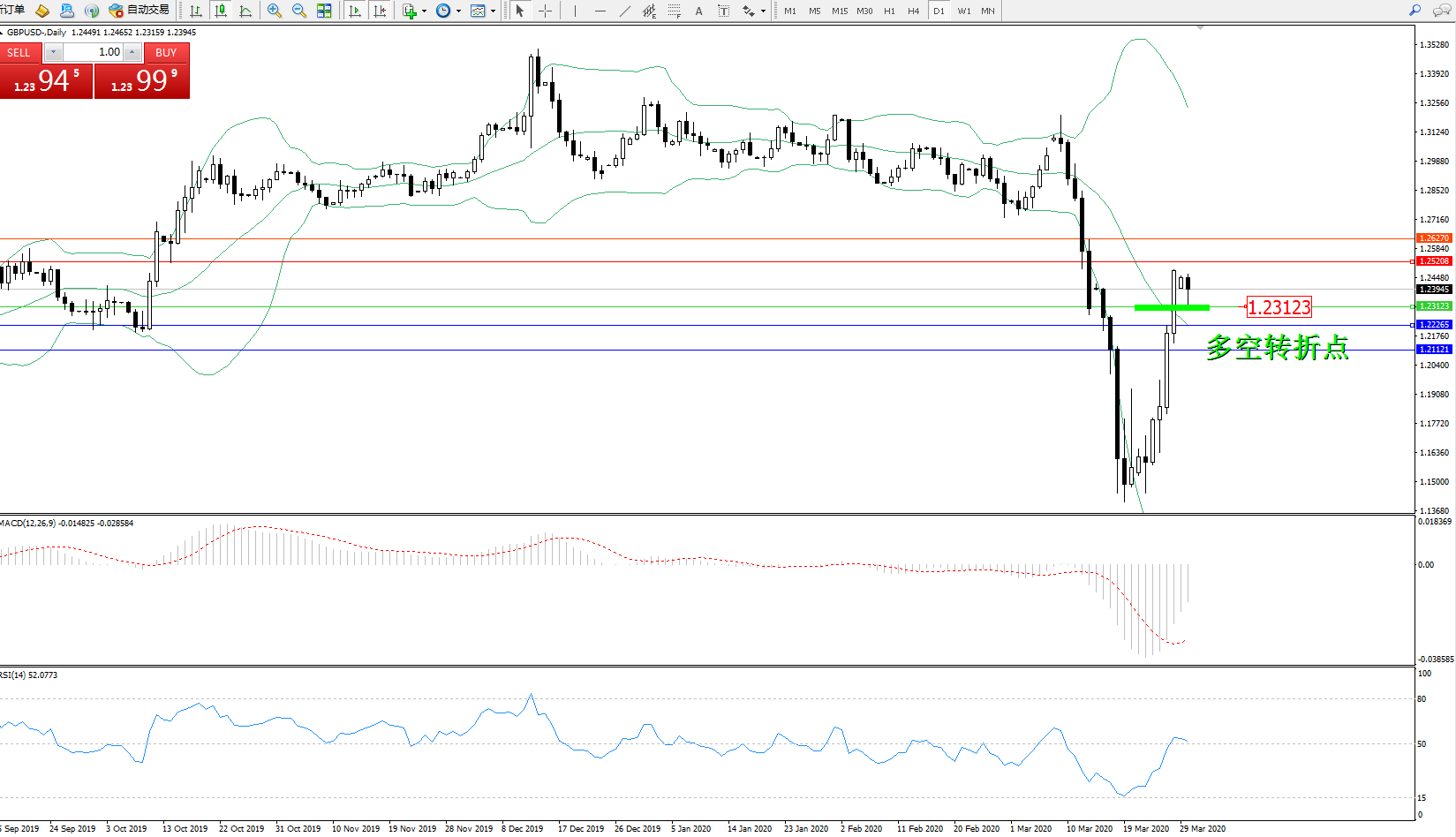 交易策略:1.23123上方看涨,目标1.252081.26270